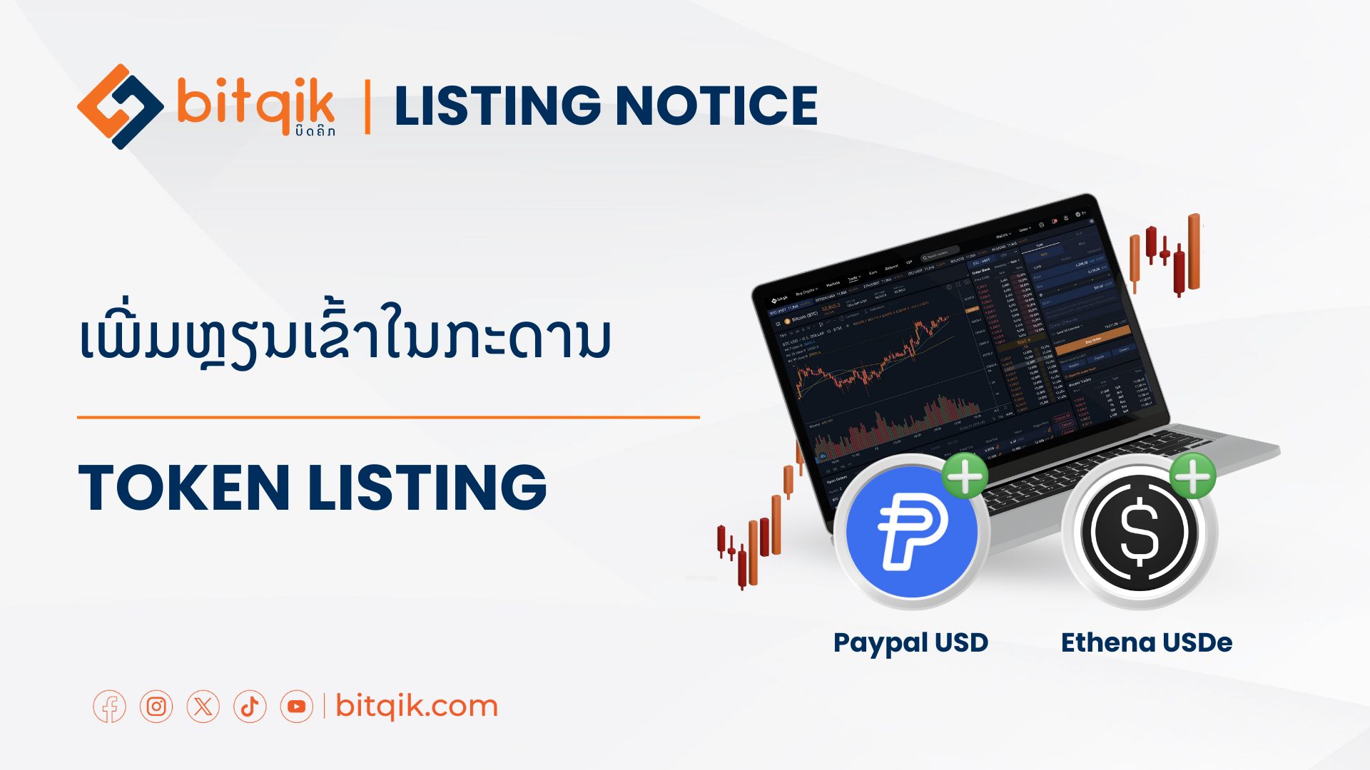 We are pleased to announce that bitqik will officially list the PayPal USD (PYUSD) and Ethena USDe (USDE) tokens as follows: